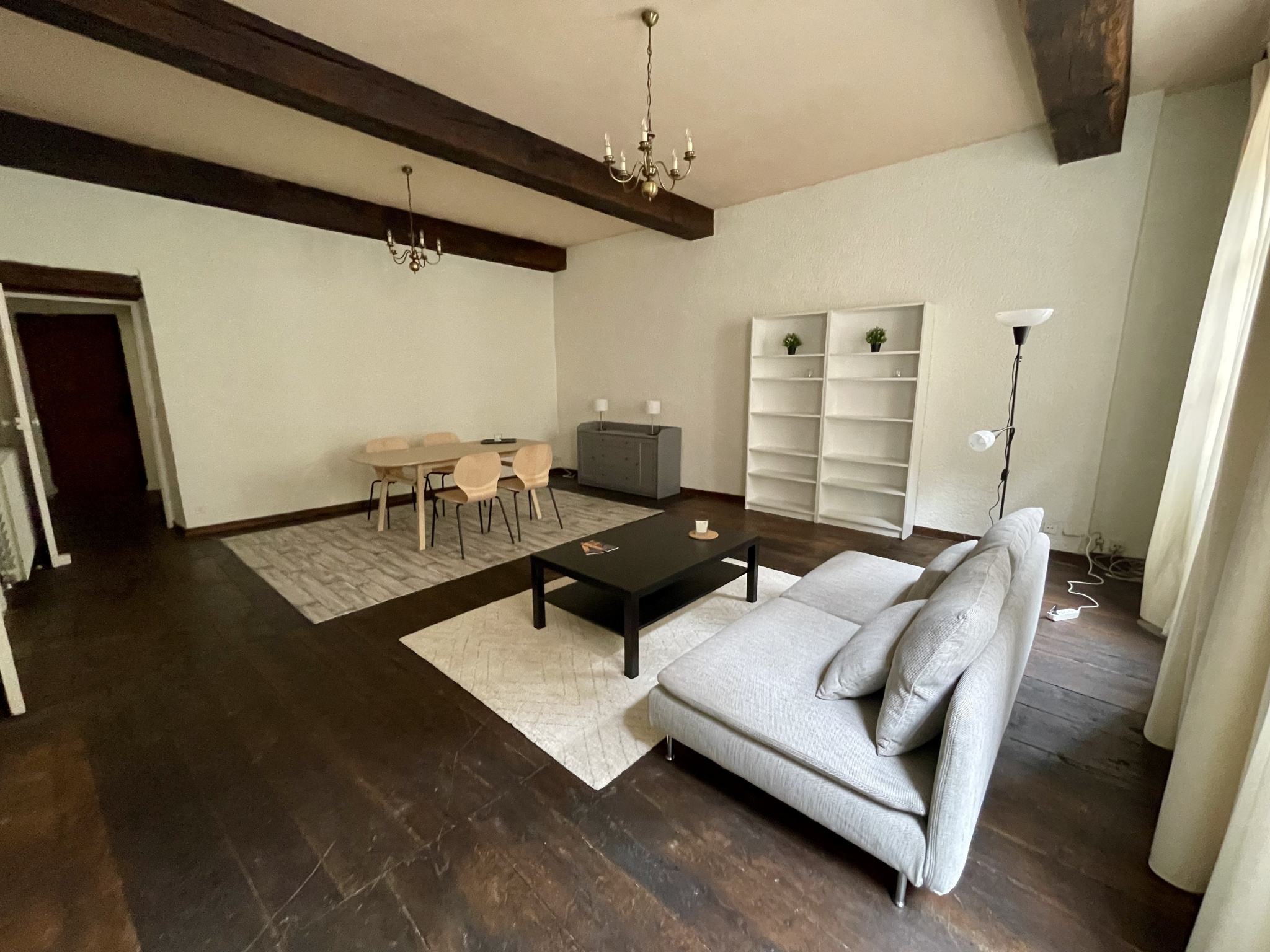 RODEZ CENTRE, dans petite immeuble de caractère, bel appartement de type 3 meublé de 85m2 en très bon état. Il bénéficie d'un grand séjour avec haut plafond, poutres apparentes, cuisine équipée neuve, 2 chambres, salle de bains et WC séparées. Tout le charme de l'ancien avec une rénovation récente et du mobiliers neufs. Cave et emplacement de parking privatif.