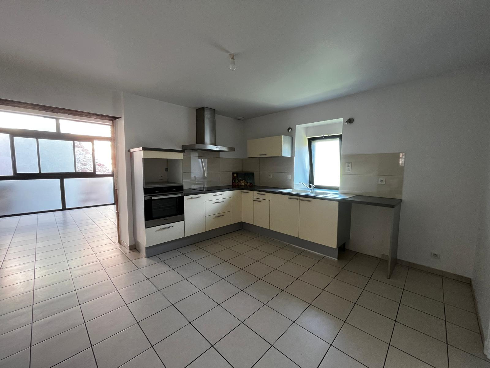 Maison de village à louer, 116 m² en très bon état. Bien agencée, elle offre 3 chambres et un bureau, 2 salles de bains, une grande cuisine avec cellier et de nombreux rangements. Grand garage et petite cour. Située dans un village agréable à 15 min de Rodez. Logement confortable et facile à vivre, sans contraintes d’entretien extérieur. Disponible rapidement.